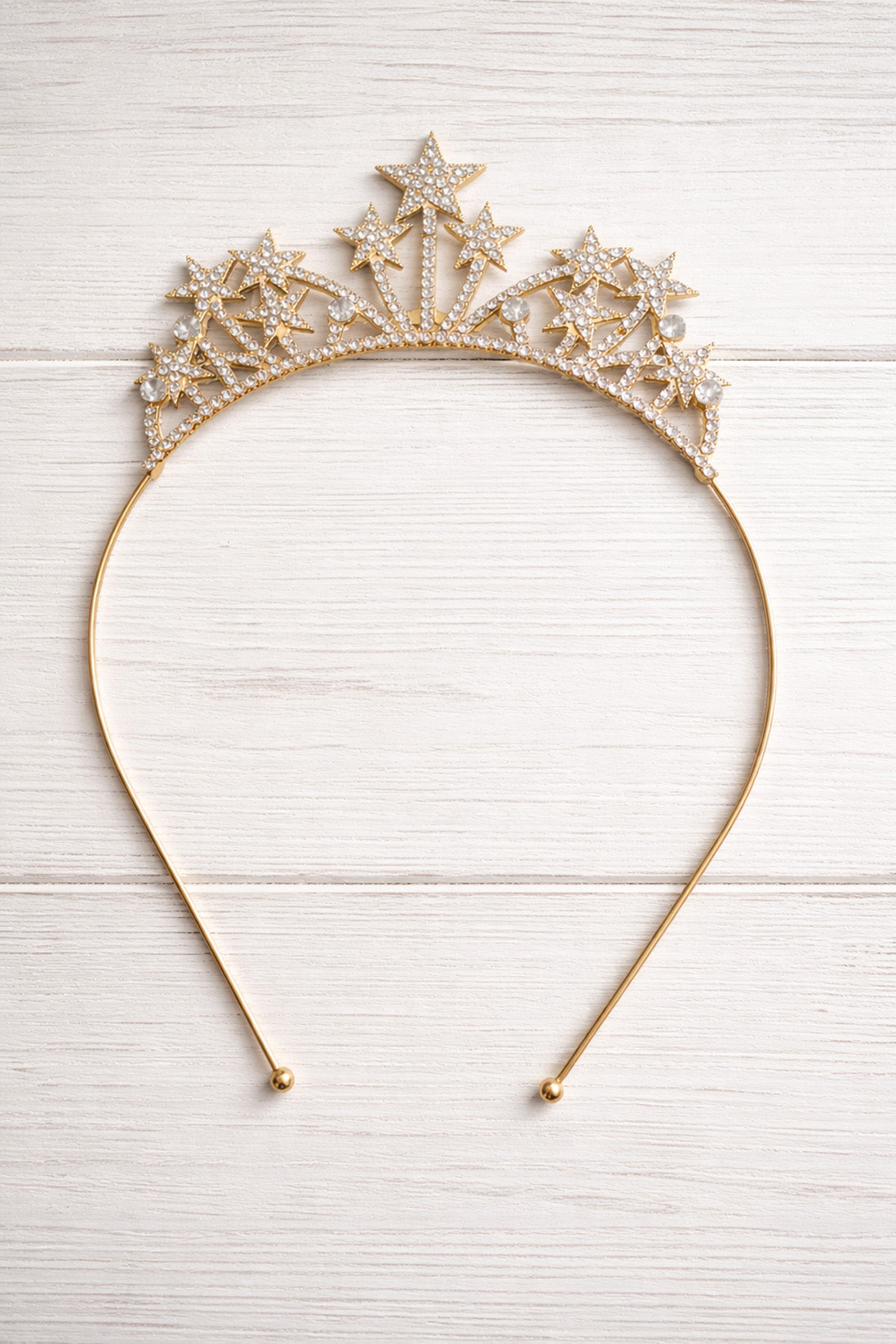 Add a touch of sparkle and fun with our Venus Headband. Designed to shimmer beautifully in the light, this stunning piece features delicate gold rays adorned with crystal accents, creating a soft halo effect that feels both timeless and magical.