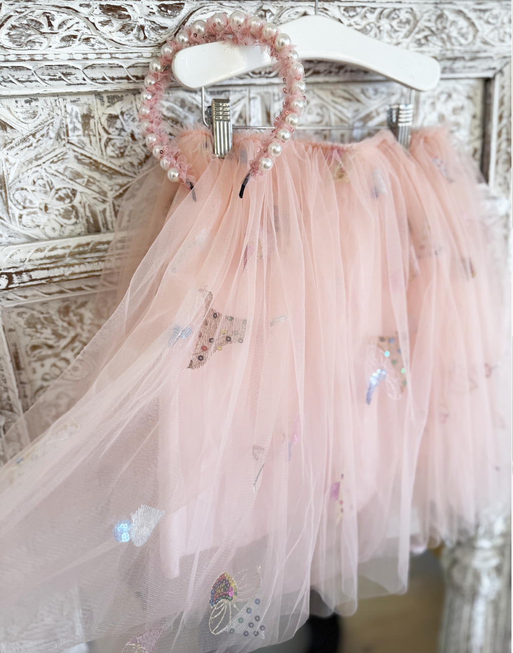 Your little one will love her enchanted tulle tutu with matching tulle and pearl headband.